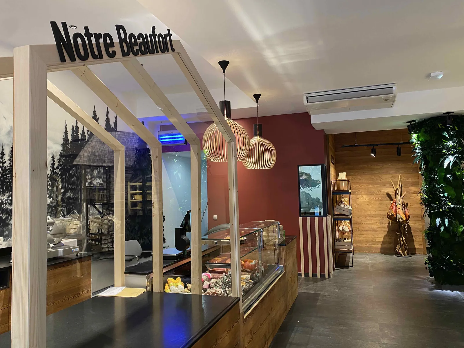 Située sur la zone commerciale de l'Île Roche à Sallanches, la Coopérative de Beaufort souhaitait transformer cette cellule brute de 300 m2 en magasin pour commercialiser ses propres produits, ainsi qu'une gamme complète de produits alimentaires en circuit court.