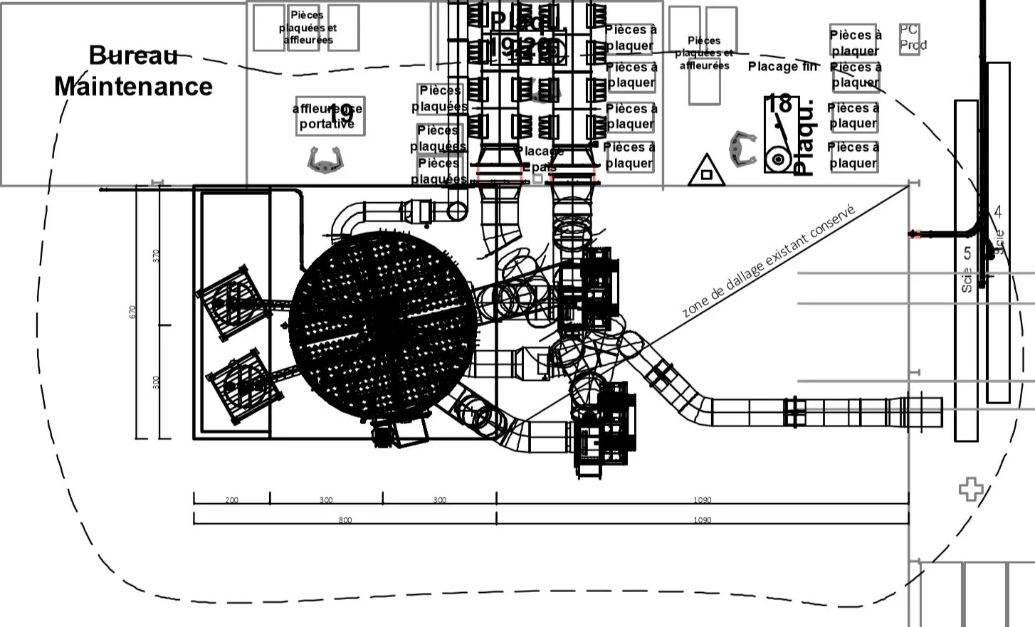 Réalisation des massifs béton, création des réservations techniques, raccordement en attente du système d’aspiration centralisé.