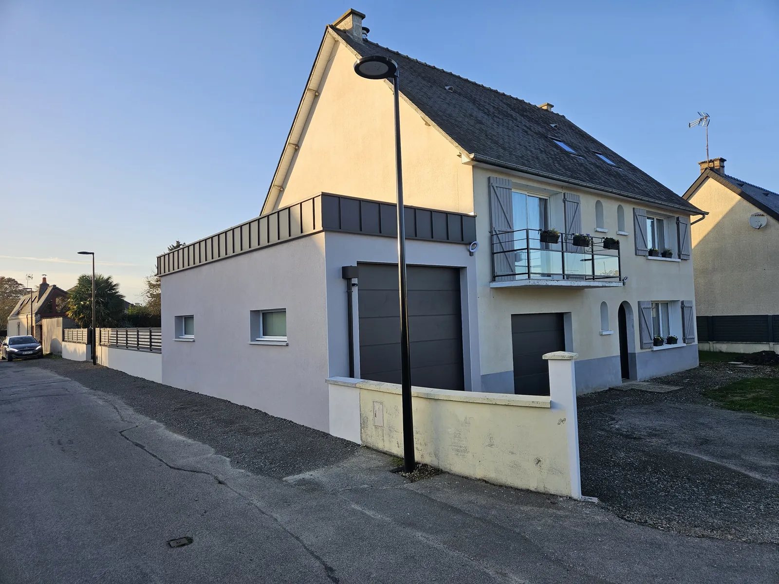 Les clients souhaitent agrandir leur maison située à Etrelles (35) pour créer un garage capable d'accueillir un camping-car. Ce projet vise à augmenter la capacité de stationnement des véhicules tout en modernisant l'espace extérieur.