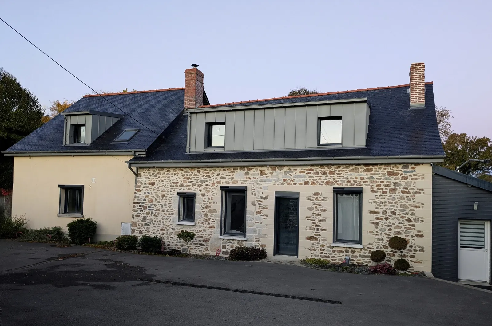 Les chiens-assis ont été modernisés avec l'utilisation de zinc, apportant une touche contemporaine et durable à la structure.